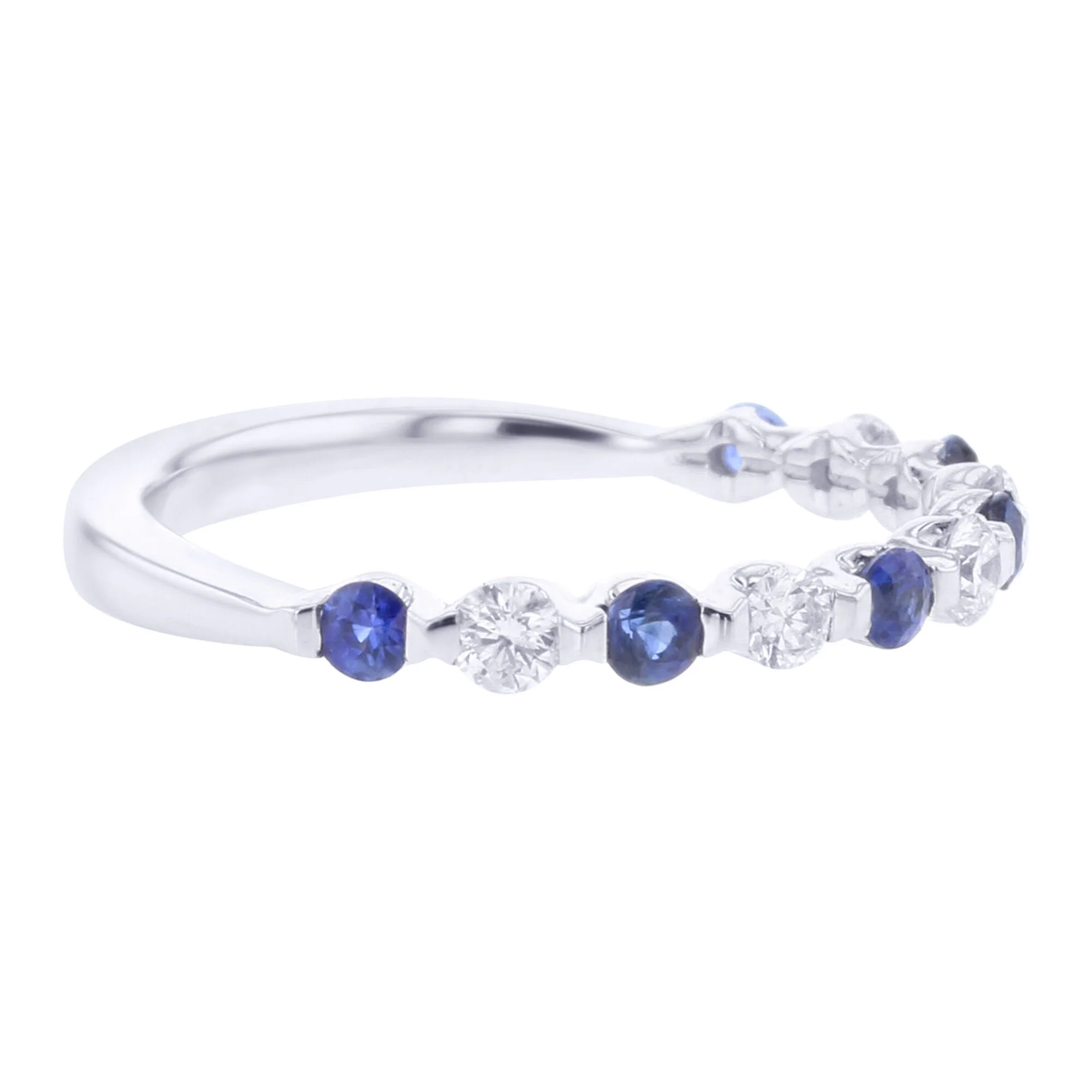 One of our most unique sapphire and diamond bands is Mazarine! Expertly crafted from 14 karat gold and set with 1/2 carat of alternating heat treated sapphires and brilliant white diamonds. Make this stunner your new favorite ring!