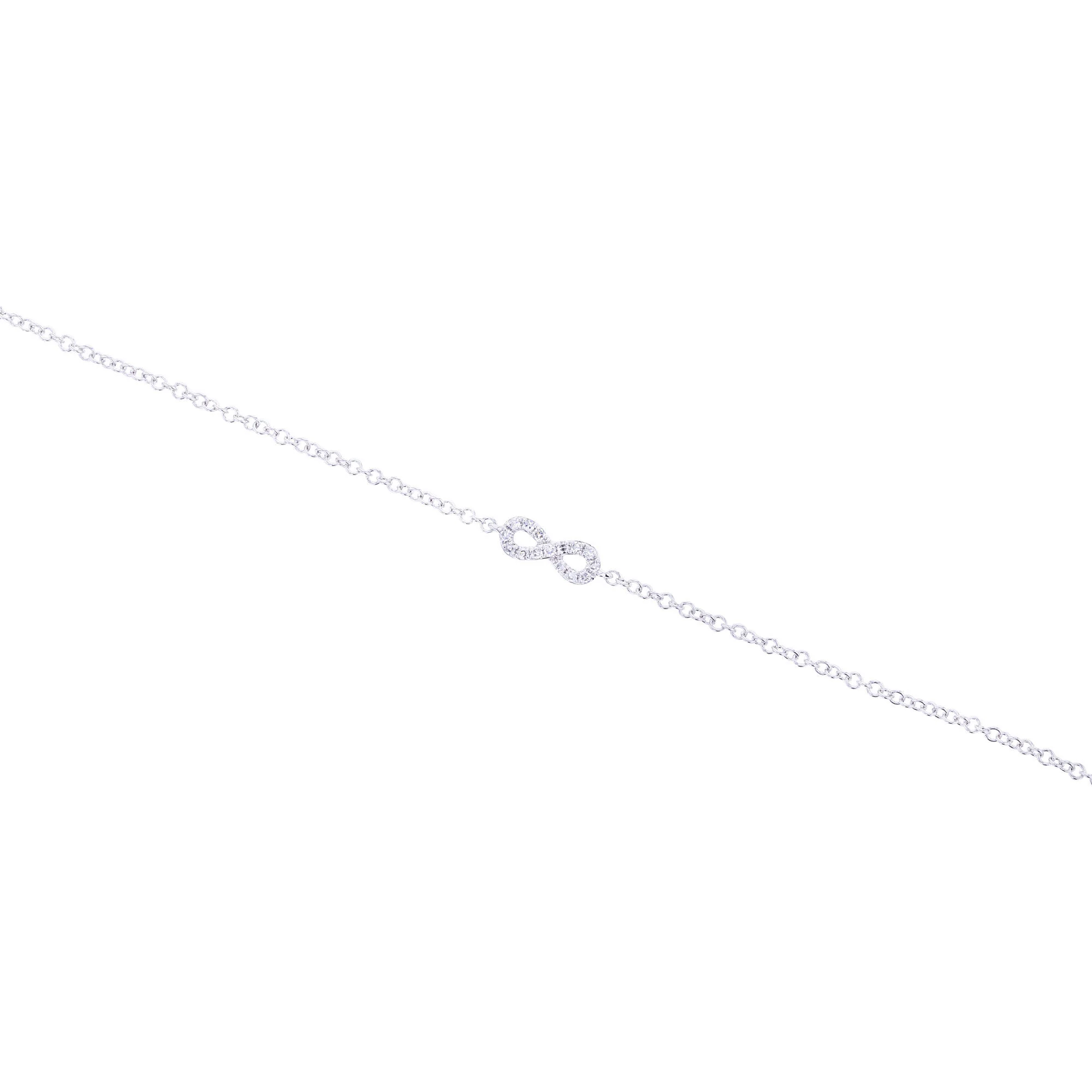 The Petite Infinity Chain Diamond bracelet is one of our most versatile chain bracelets. It has a delicate infinity symbol with 1/20 carat of bright white round diamonds and looks amazing alone or paired with your favorite bangle.